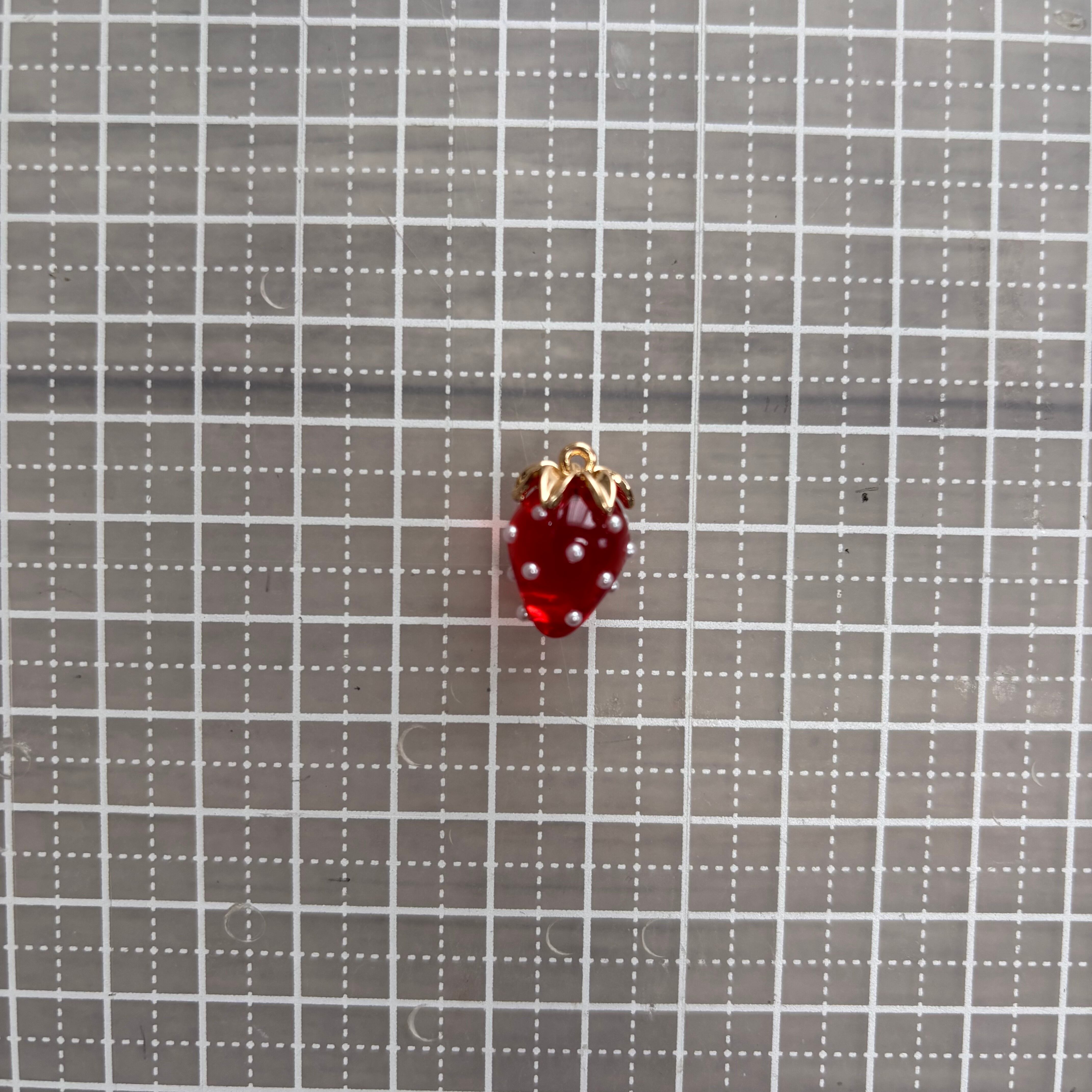 パール・ゴールドボールをあしらった上品なカン付きいちごパーツです。