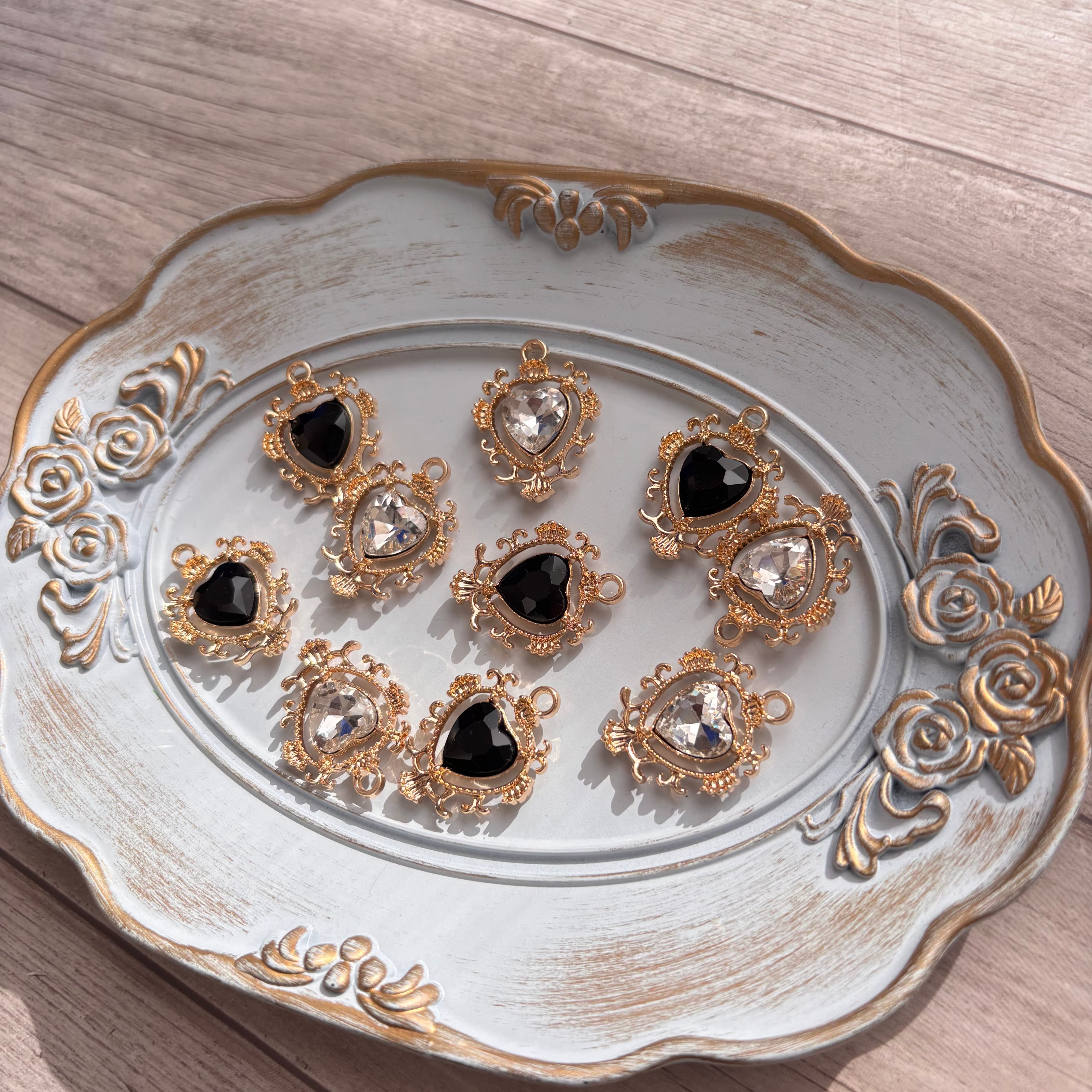 カン付き ハートパーツ(ブラック・クリア)10個セット