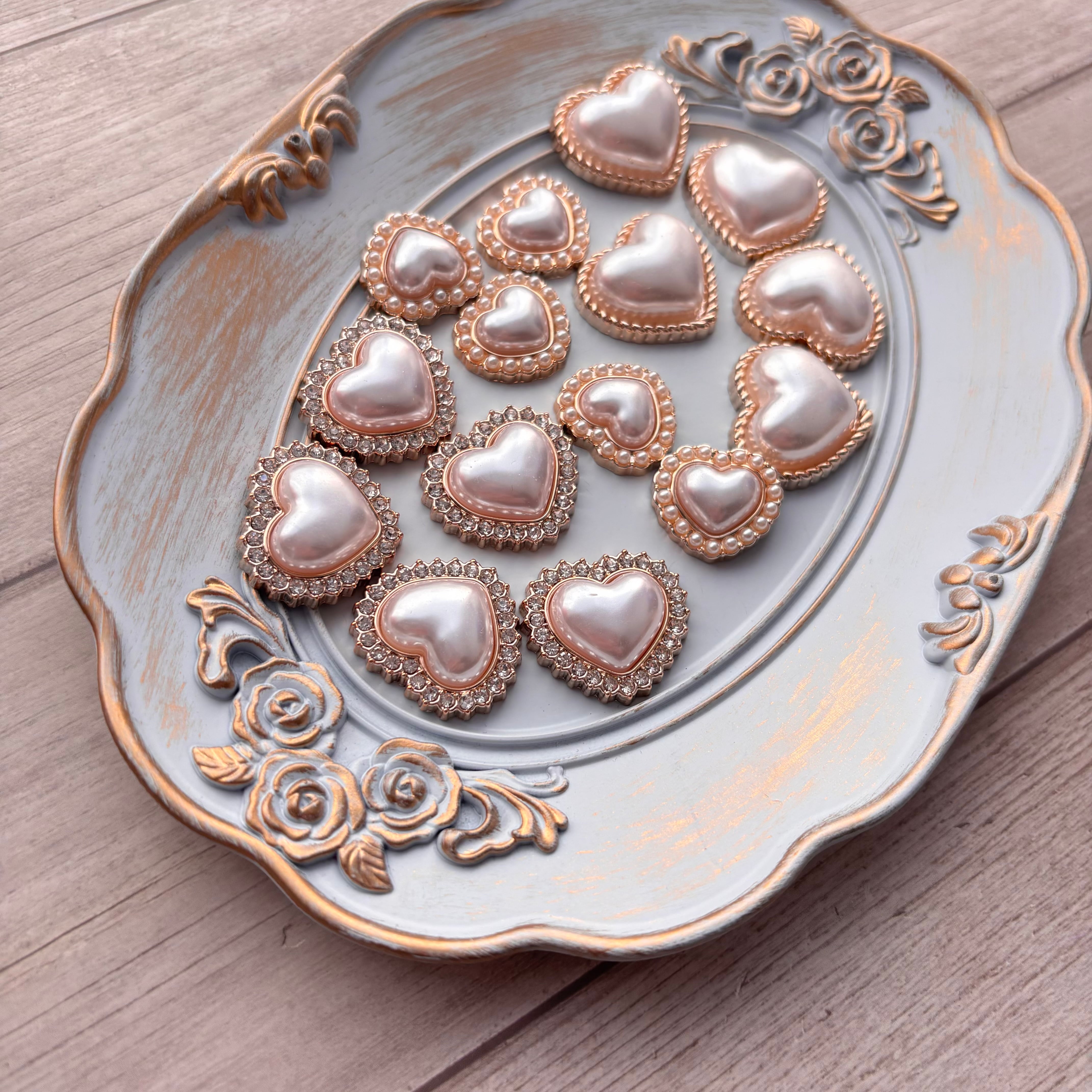 パール調ハートパーツ 3種15個セット