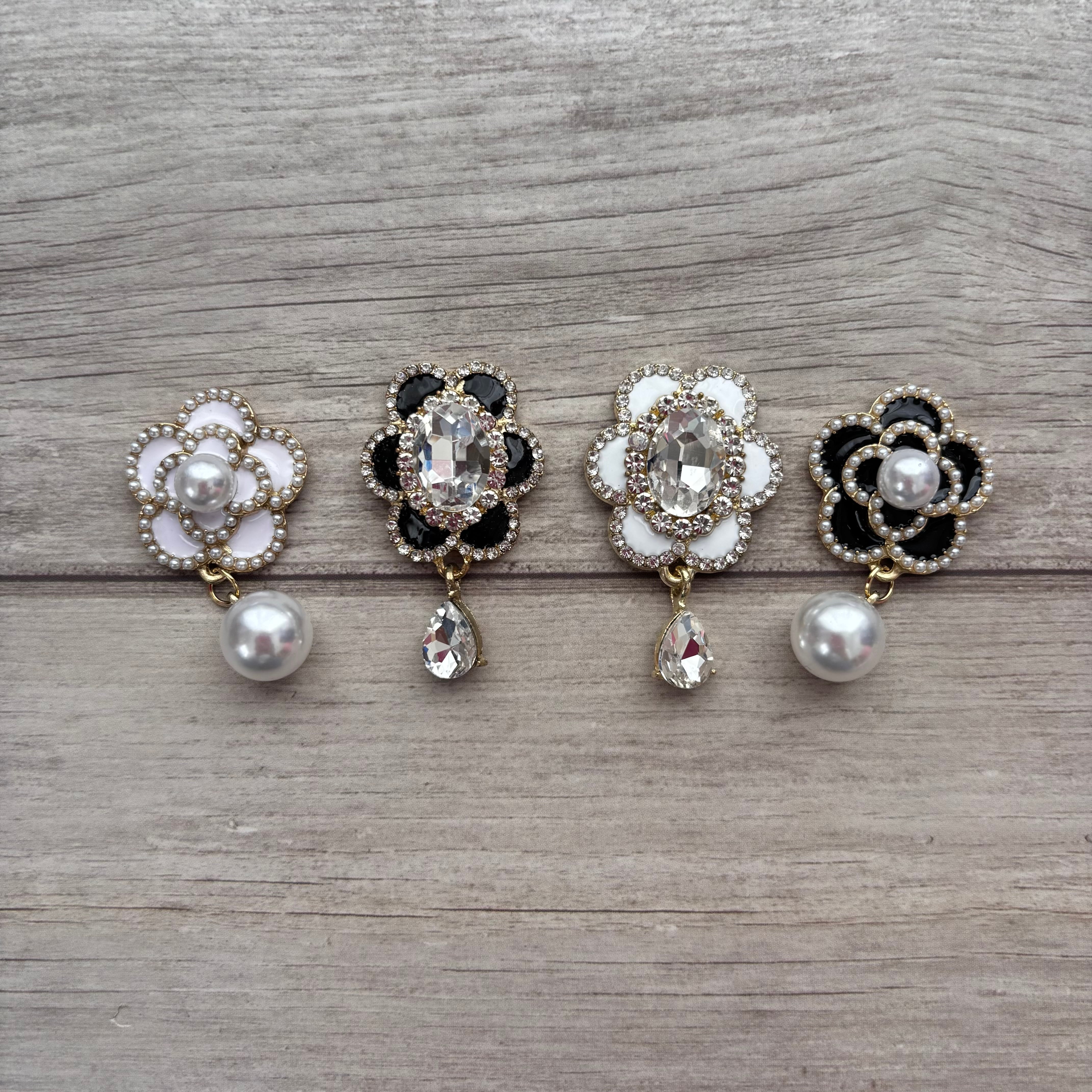 高品質⭐️ぶら下がりパール・ストーン付きカメリアパーツ 4個セット